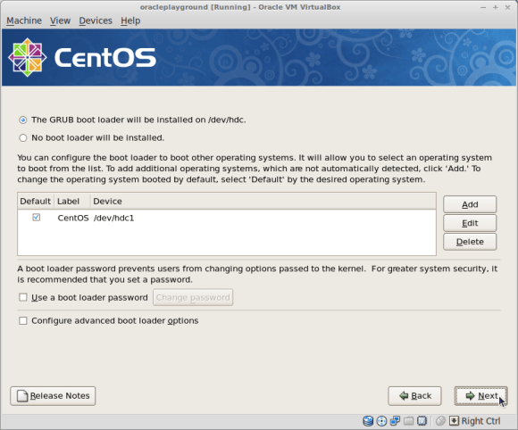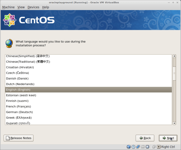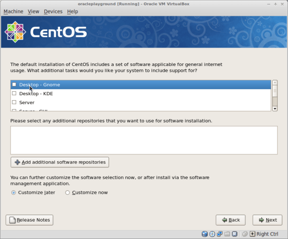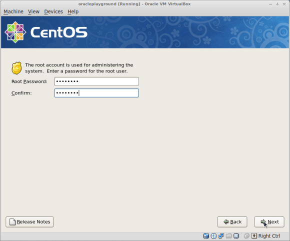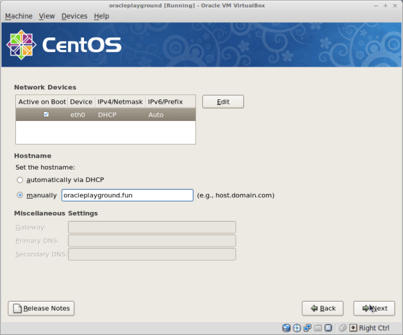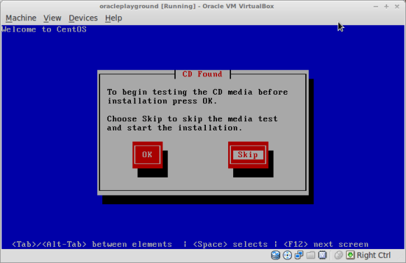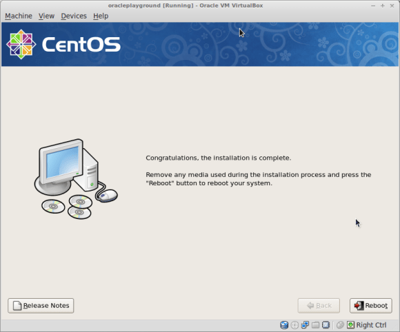 Create a new CentOS 64bit Virtual Machine and name it oracleplayground ( or whatever name you like, just make sure you replace oracleplayground with the name of your choice in the below commands ):
