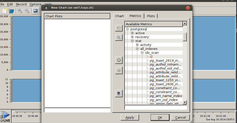 pminfo -f | grep -i postgres ... postgresql.stat.all_tables.last_vacuum postgresql.stat.all_tables.n_dead_tup postgresql.stat.all_tables.seq_scan postgresql.stat.all_tables.last_autoanalyze postgresql.stat.all_tables.schemaname postgresql.stat.all_tables.n_live_tup postgresql.stat.all_tables.idx_tup_fetch ...